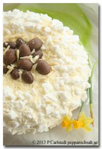 Gör så här:48 stycken. Värm ugnen till 200 grader. Lägg ett bakplåtspapper i en ugnsfast form eller braspanna cirka 30X40 centimeter. Grovhacka den vita chokladen. Smält den tillsammand med smöret på låg värme, antingen i en tjockbottnad kastrull eller i vattenbad. Blanda samman torrvarorna i en bunke. Grovhacka mandeln och chokladen. Blanda ner choklad, mandel och tranbär i mjölblandningen. Rör ner glykossirapen i smör- och chokladblandningen. Vispa ner äggen ett och ett. Blanda samman chokladblandningen med torrvarorna och rör så att mjölet löst sig. Bred ut smeten jämnt i hela ugnsformen och grädda i mitten av ugnen i cirka 16 minuter. Ta ut och låt kakan svalna helt i formen. Grovhacka den vita chokladen och smält den på låg värme tillsammans med kokosfettet, i en kastrull eller vattenbad. Bred ut glsyren över hela kakan och strö torkade tranbär över ytan. Låt kakan stå svalt tills glasyren stelnat. Skär i rutor med en vass kniv. Förvara kakorna i en tät burk i kyl eller sval så håller de länge.