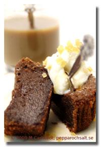 Smält försiktigt choklad och smör i en tjockbottnad kastrull. Sätt ugnen på 175 grader.